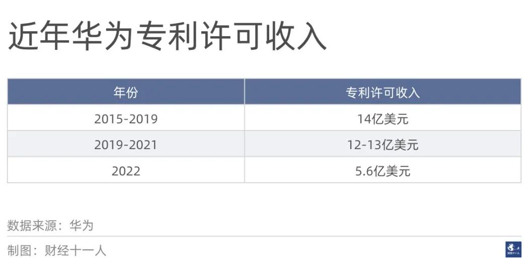 华为法律政策和IP战略副总裁樊志勇认为,与研发费用相比,华为的专利收入并不多。2022年华为研发费用支出为1615亿人民币,专利收入5.6亿美元(约40亿人民币),仅占2.5%。如果放在十年的尺度来看,华为近十年累计投入的研发费用达到9773亿人民币,而专利收入转正只是近两年的事。