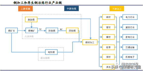 铜加工材是指由铜及铜合金制作出的各种形状的铜材,如铜板、铜带、铜线、铜排、铜管、铜棒、铜箔等。铜加工是铜产业链当中的重要一环,我国是世界上最大的精炼铜、铜材生产国和消费国。