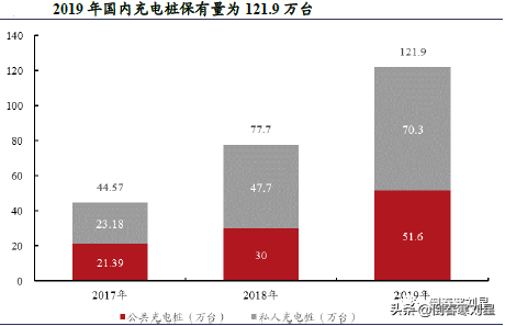编制的《汽车产业中长期发展规划》中明确,到2020 年我国新能源汽车年产量将达到200 万辆,年均复合增长率40.93%;《电动汽车充电基础设施发展指南》中提出,到2020 年,新增集中式充换电站超过1.2 万座,分散式充电桩超过480 万个,到2025 年,建成超过3.6 万座充换电站,全国车桩比达1:1。据中国充电联盟的数据,2019 年国内充电桩保有量仅121.9 万台。我们假设:1)到2020 年底,规划完成一半,即国内充电桩保有量240 万个;2)直流桩耗铜70kg/个,交流桩耗铜4kg/个,交直比为4:1,则单个充电桩耗铜为17.2kg;可以计算出2020 年充电桩有望消耗铜2.03 万吨。