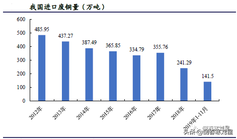 我国再生铜冶炼市场:废杂铜进口依赖度较高。全球废杂铜回收利用量占当年铜产量的30%~40%。主要分两类:①经熔炼、电解生产电解铜,即再生精铜,占精铜比重15%;②直接以非精炼铜或铜合金形式生产出铜材或铜合金。