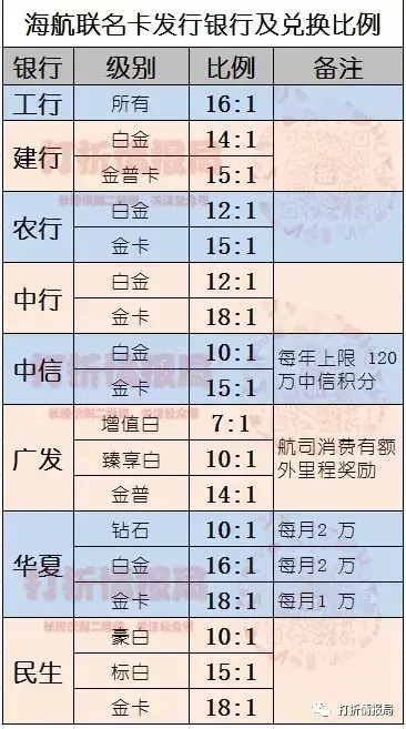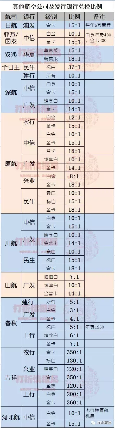 1、各家银行的积分兑换航空里程表