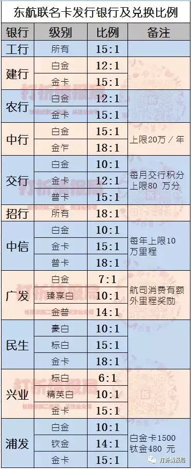 1、东航:白金卡12:1、金卡15:1