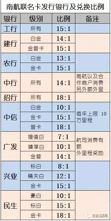 4、南航:14:1,在南航以及合作商户消费另外额外里程奖励。