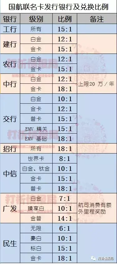 2、国航白金卡10:1,金卡12:1,普卡15:1,EMV精英 15:1,EMV基础18:1