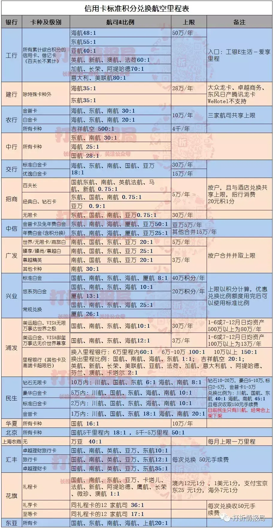 兑换比例,每年上限等等都已经列出来了,不能单纯哪家银行或者哪家卡里程兑换就最优了,这还涉及到多倍积分以及生日月积分等等,