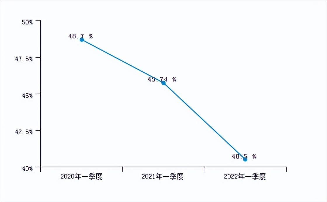 中国长江电力股份有限公司2020年一季度至2022年一季度的资产负债率分别为48.70%、45.74%、40.50%,企业的资产负债率变化呈现持续下降的趋势,且当年的下降幅度较大。