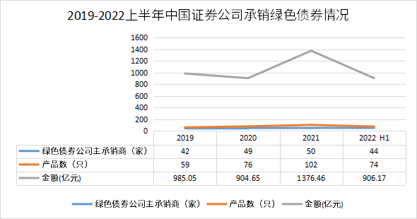 图表1:2019-2022上半年中国证券公司承销绿色债券情况
