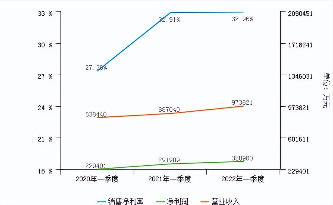 2022年一季度中国长江电力股份有限公司核心利润为322,147.22万元,与2021年一季度的217,528.03万元相比大幅度增长,增长了48.09%。企业核心利润近三年呈现先下降后上升,波动上升的趋势,且当年的上升幅度高于去年的下降幅度。