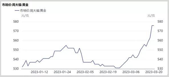 对应国内的黄金价格也是水涨船高,突破每克500元。以周大福为例,一根30克的金条,现在购买比年初贵1200元。