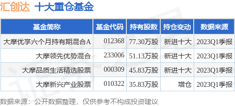根据2023Q1季报公募基金重仓股数据,重仓该股的公募基金共4家,其中持有数量最多的公募基金为大摩优享六个月持有期混合A。大摩优享六个月持有期混合A目前规模为4.7亿元,最新净值0.8327(6月5日),较上一交易日上涨0.0%,近一年下跌3.9%。该公募基金现任基金经理为何晓春 赵伟捷。何晓春在任的基金产品包括:大摩品质生活精选股票,管理时间为2018年2月10日至今,期间收益率为96.91%;大摩领先优势混合,管理时间为2019年9月16日至今,期间收益率为53.18%;大摩优悦安和混合A,管理时间为2020年9月24日至今,期间收益率为-26.18%;大摩新兴产业股票,管理时间为2021年2月24日至今,期间收益率为-3.52%。赵伟捷在任的基金产品包括:大摩优悦安和混合A,管理时间为2021年3月4日至今,期间收益率为-31.07%;