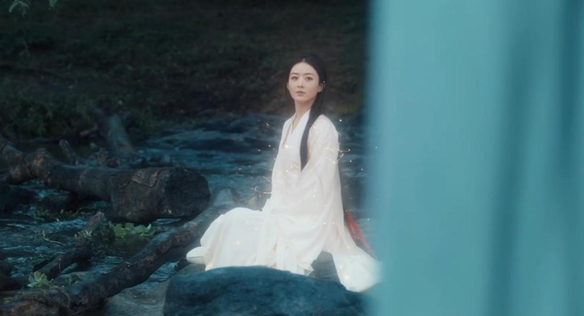 赵丽颖饰演的女主角被打落凡间时亮相的第一个镜头,就差把抠图两个字写在旁边,周围的场景是实的,赵丽颖整个人却是虚的,甚至还发着光。