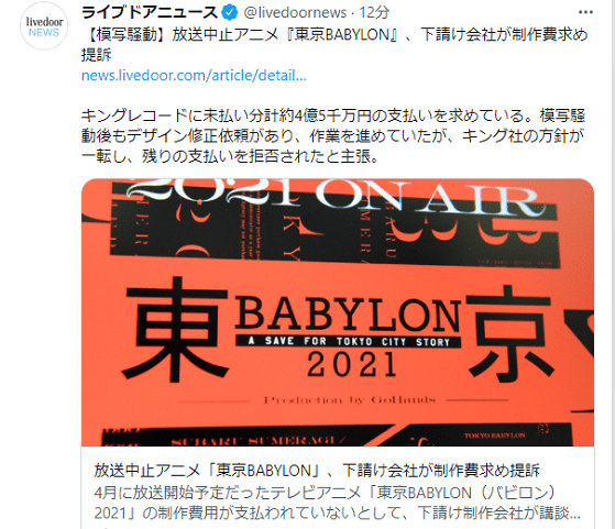 不知道网友们是否还记得上段时间原本打算动画化但最终因为“某些原因”而被终止动画化的作品《东京巴比伦2021》?