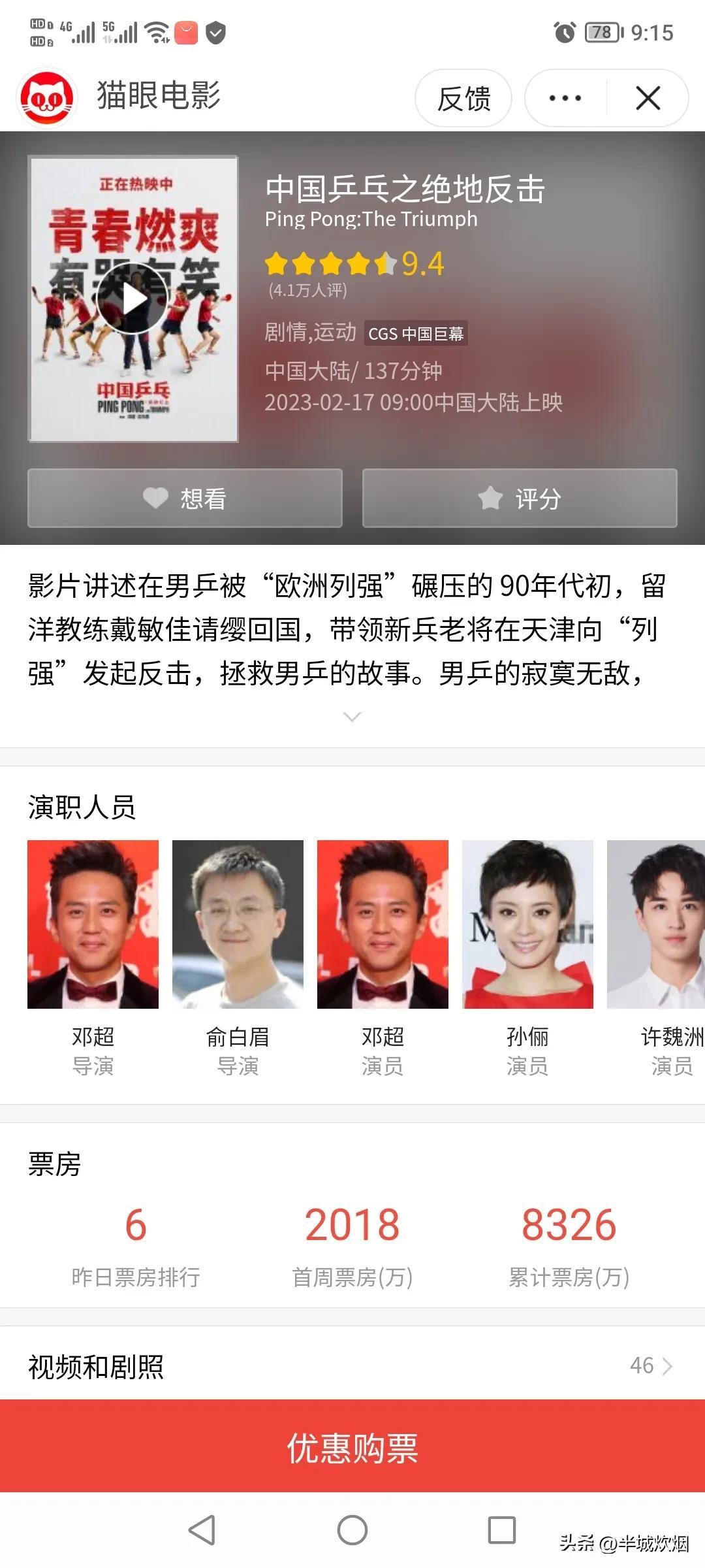拍了一部正能量的《中国乒乓》,评分虽然高达9.3分,票房却如此惨淡!