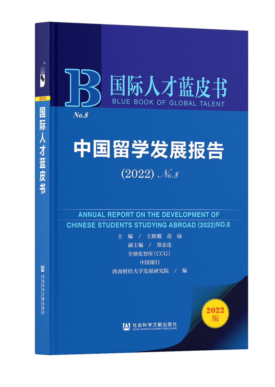 近日,《中国留学发展报告(2022)》蓝皮书在社会科学文献出版社出版,本报告由全球化智库(CCG)主任王辉耀博士、秘书长苗绿博士、副主任郑金连博士编著,全球化智库(CCG)、中国银行、西南财经大学发展研究院合作编写。本书重点反映了新形势下全球留学发展的新趋势,分析我国留学发展的新动向,探讨我国留学回国人员发展的新特点,总结来华留学人员的新情况,探索发展留学事业、加强国际化人才培养的新路径。