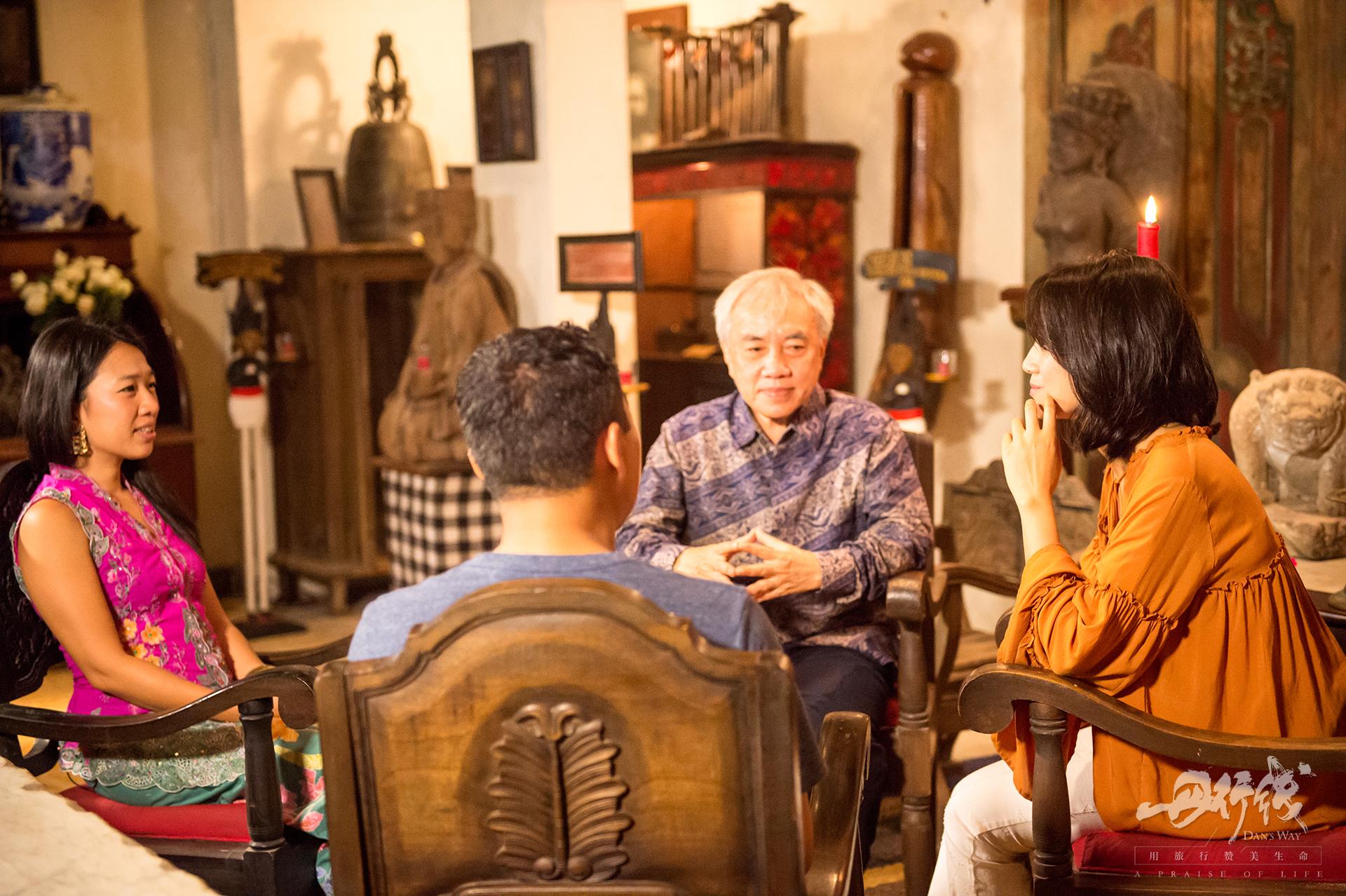 安哈尔父女二人与朱丹分享了纪念碑酒店的来历,以及他们从事古董收藏的人生经历。安哈尔与古董的缘分始于几十年前环游印尼的旅行,年轻的他发现大量古代遗物因老旧和过时而被人丢弃,或被卖到国外,这一切令他倍感惋惜。