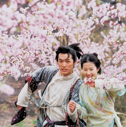 而在拍摄那场李逍遥与赵灵儿初遇的戏份时,剧组也同样费尽心思,为了复刻出漫天桃花的景象,剧组特意等到了农历的四五月份,可是那一年的春天却来的很慢,横店的桃花始终都没开出想要的效果。